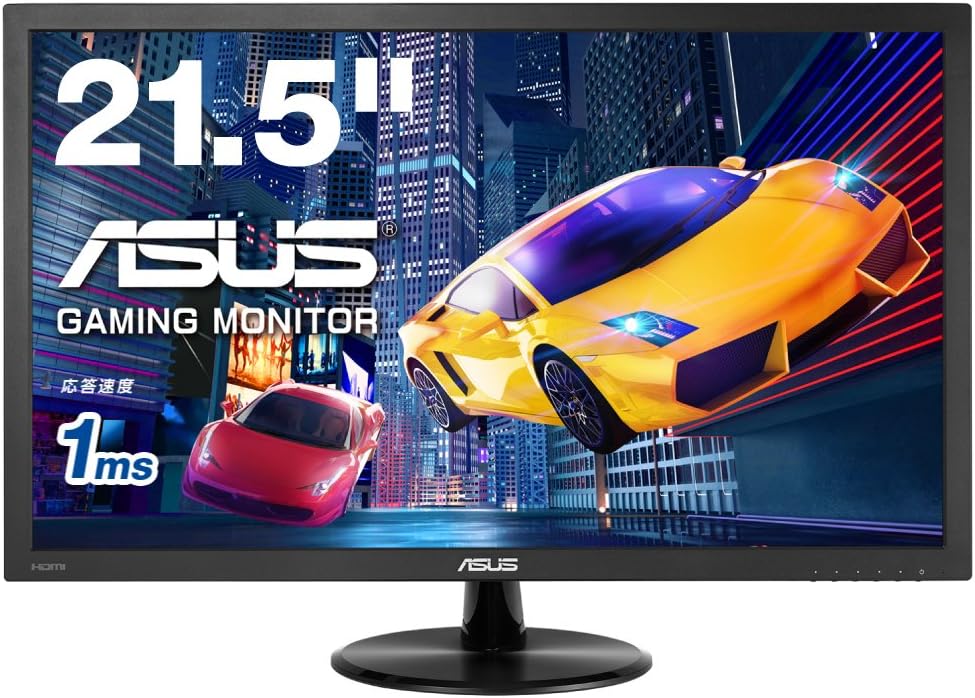 ASUSの21.5インチのノングレア(非光沢)を選択しました。音楽もモニタからでるし、大きすぎずにちょうどよいサイズです。